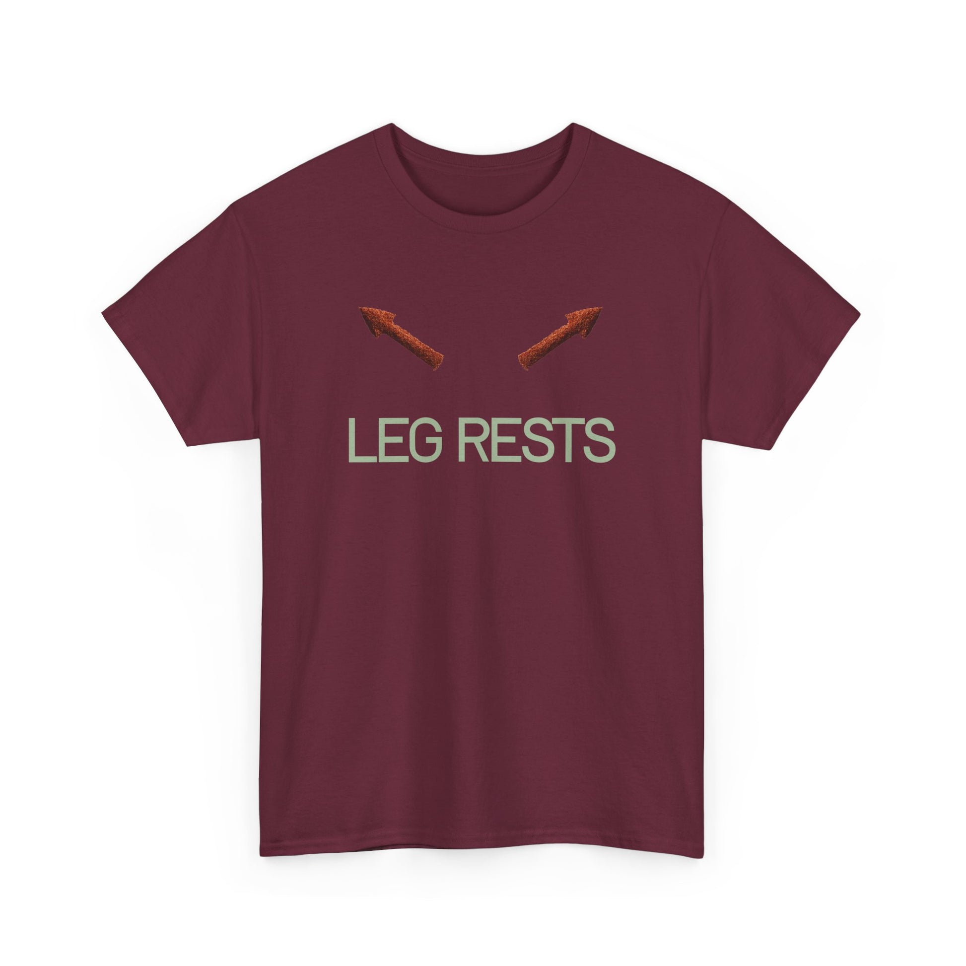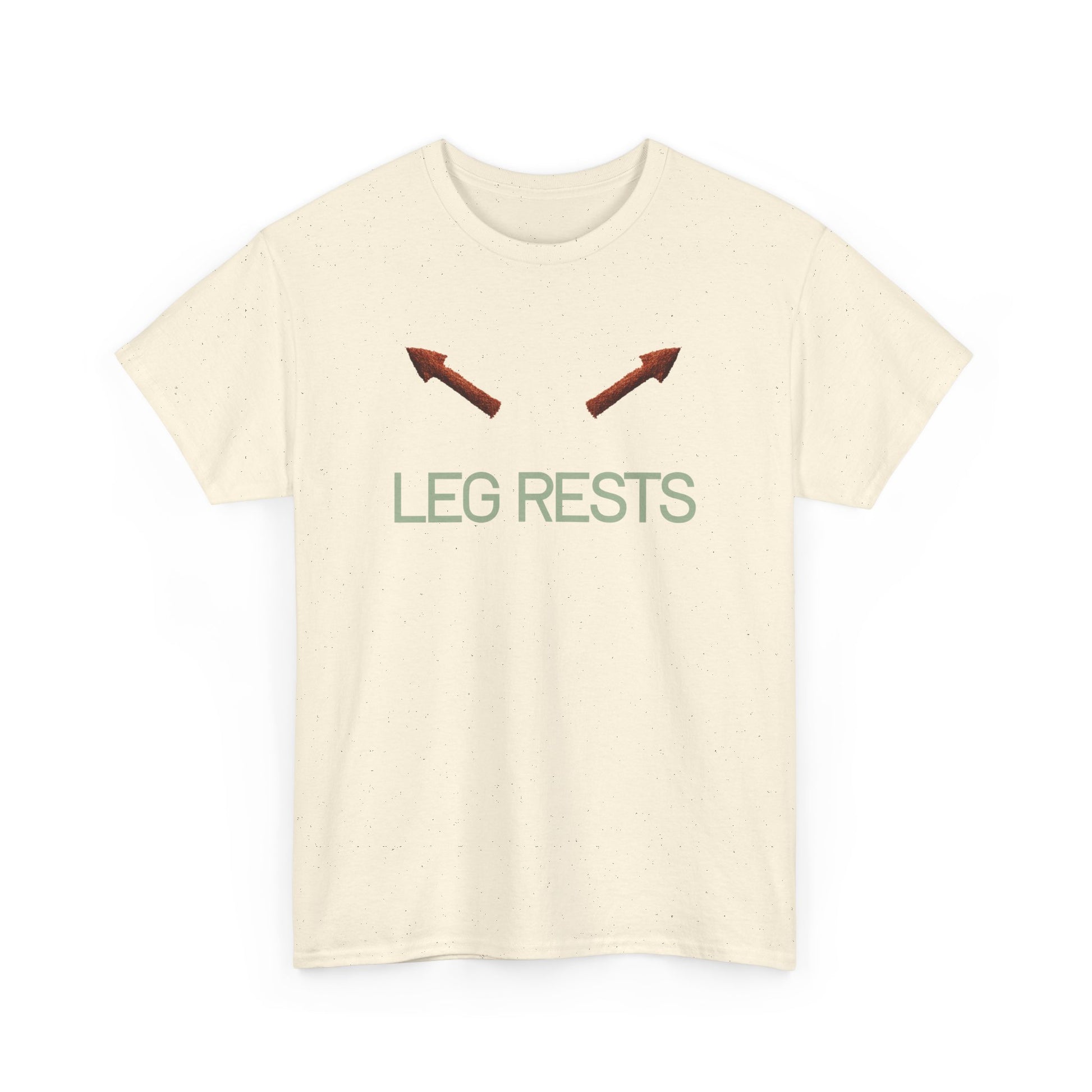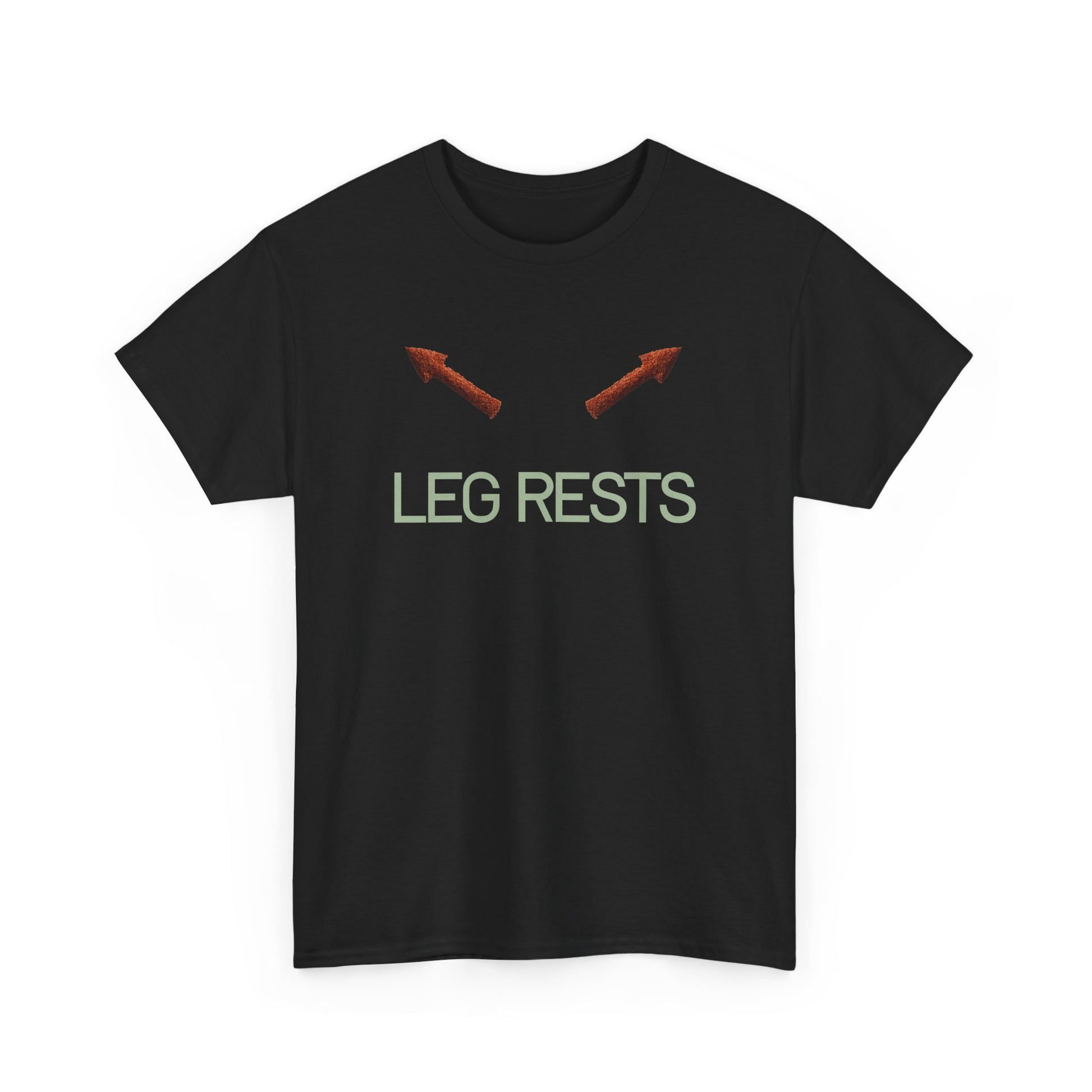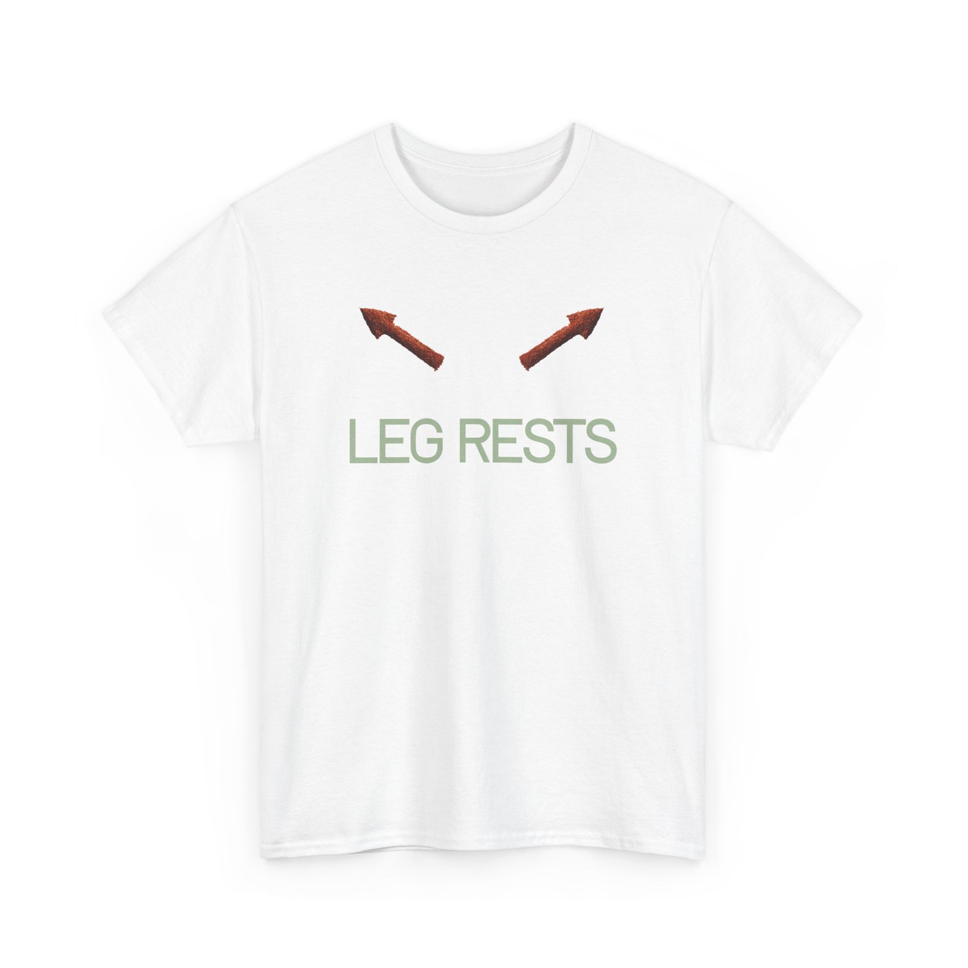 Light, literal, and a little cheeky — this tee quietly announces your stance. Two small arrows point upward above the phrase “LEG RESTS,” a simple graphic that reads like a private joke shared between partners, roommates, or anyone who appreciates a minimalist sense of humor. The soft white cotton and relaxed crew silhouette make this shirt an easy layer for lazy weekends, travel days, or couch-side movie marathons. Wear it when you want to be comfortable and a bit sly — it’s more about mood than shouting for attention.